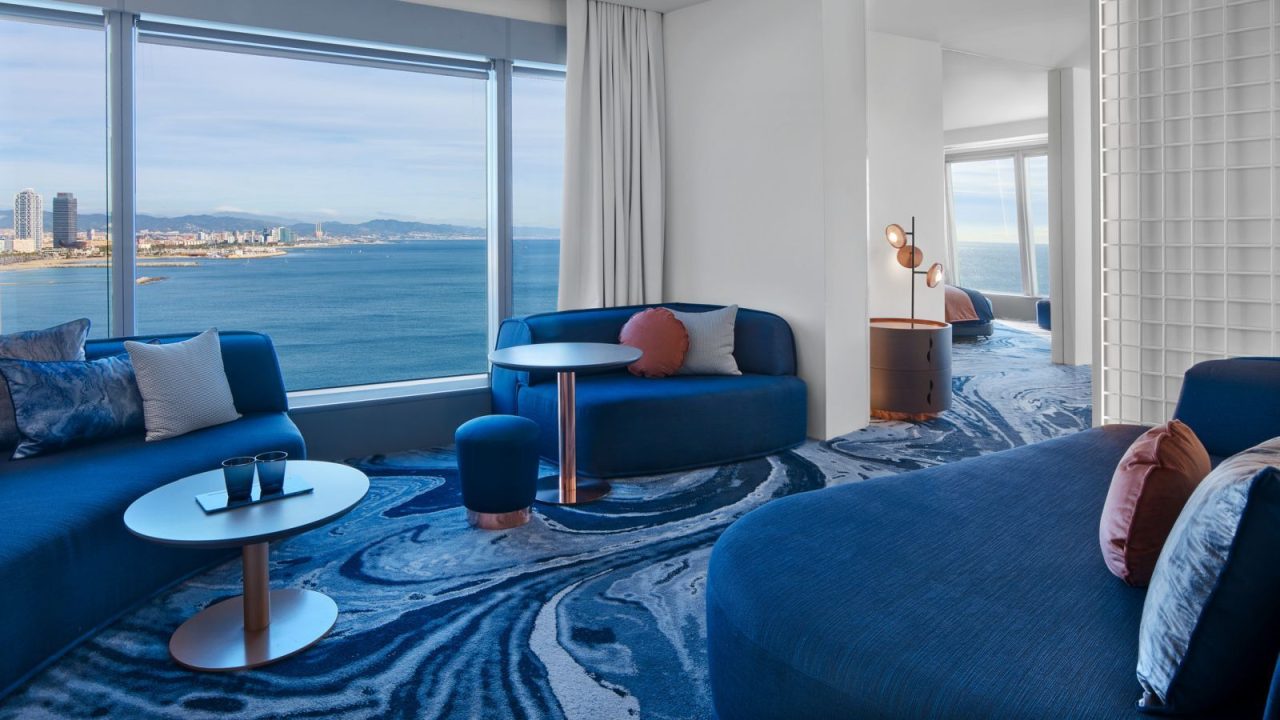 Cuenta con 473 fabulosas habitaciones y suites con vistas panorámicas del Mediterráneo y la ciudad de Barcelona. En 2009 Alarwool ya fabricó la totalidad de la moqueta de habitaciones y pasillos y en este año 2017 se ha encargado de nuevo de la fabricación del espectacular diseño desarrollado junto a Bowler & James (Londres) para la remodelación de habitaciones y suites.